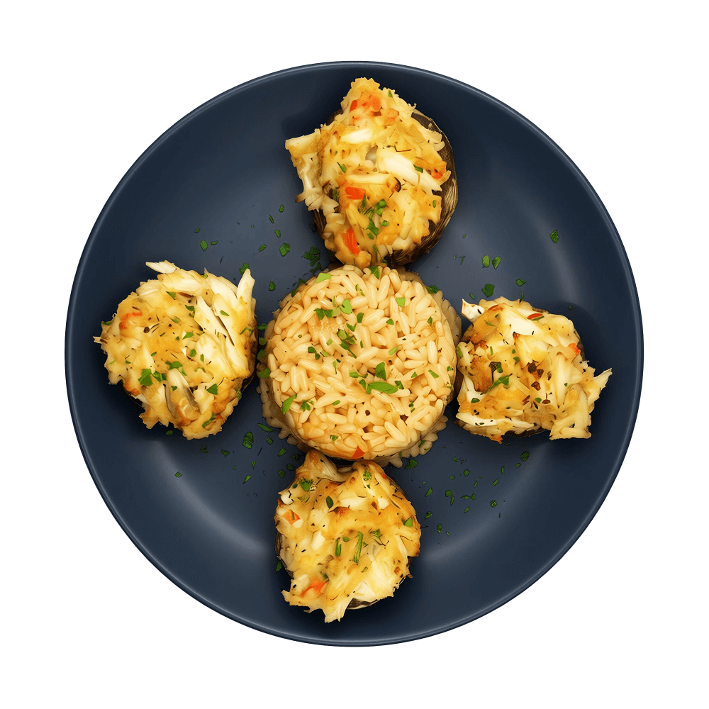 Chesapeake Crab-Stuffed Mushrooms with Old Bay Rice Pilaf