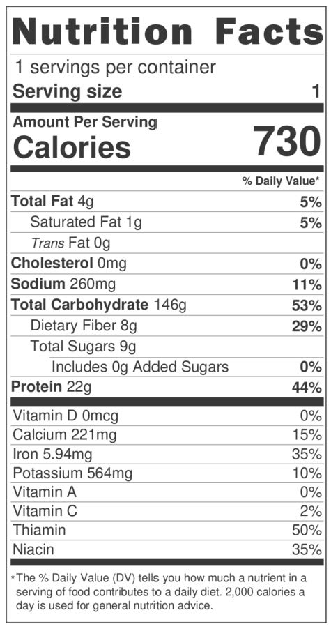 Cal: 730 calories per serving
